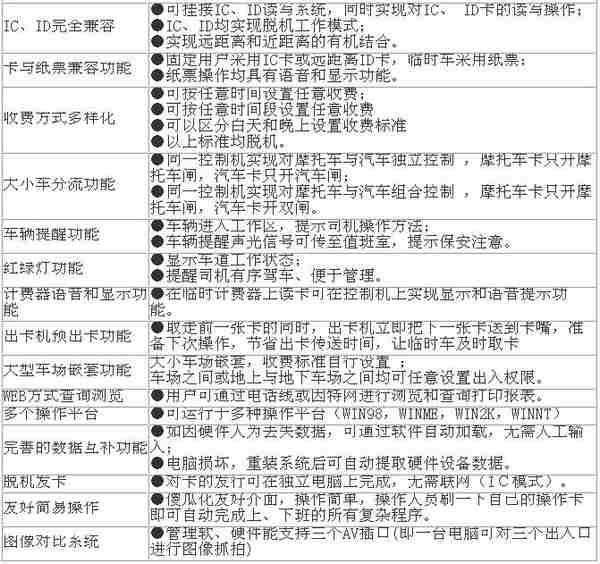 我公司2003版系統,真正做到了IC、ID遠近距離讀卡系統兼容,臨時卡(IC卡)使用出卡機發卡,儲值卡車主和月租卡車主使用遠距離的ID卡,可以不停車讀卡出入。
