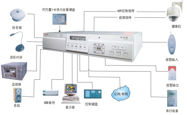 監控系統組成:監控系統可分為系統前端設備、系統傳輸設備、系統顯示設備、系統存儲設備及系統控制設備等。