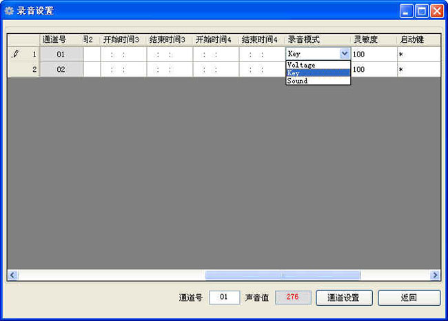 錄音啟動方式靈活,具有壓控、鍵控多種啟動方式,可以是某段時間內(nèi)錄音,也可以是24小時錄音,錄音起始時間可以靈活設(shè)置。