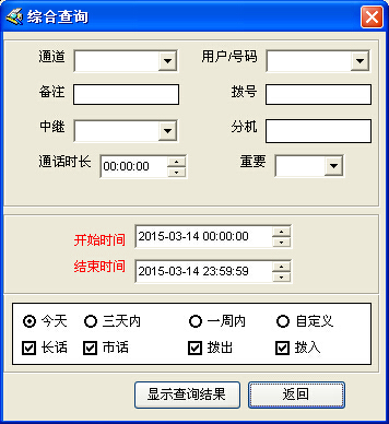 10、“綜合查詢”界面:可以按指定條件來查找,統計錄音記錄。