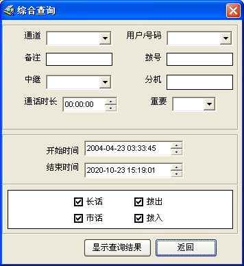 9、“綜合查詢”界面:可以按指定條件來查找,統計錄音記錄。
