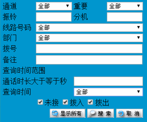 對所有撥入的電話按來電號碼、通道、來電號碼、呼叫時間、話務類型、通話時長等進行統(tǒng)計。
