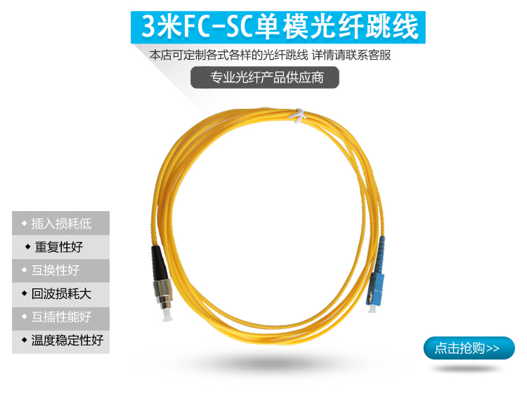 3米SC-FC單模光纖跳線 收發器尾纖