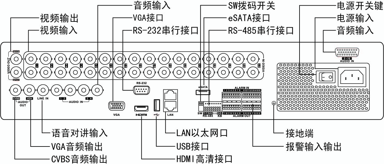 注:DS-8124HWS-SH后面板與此相似,請以實物為準。
