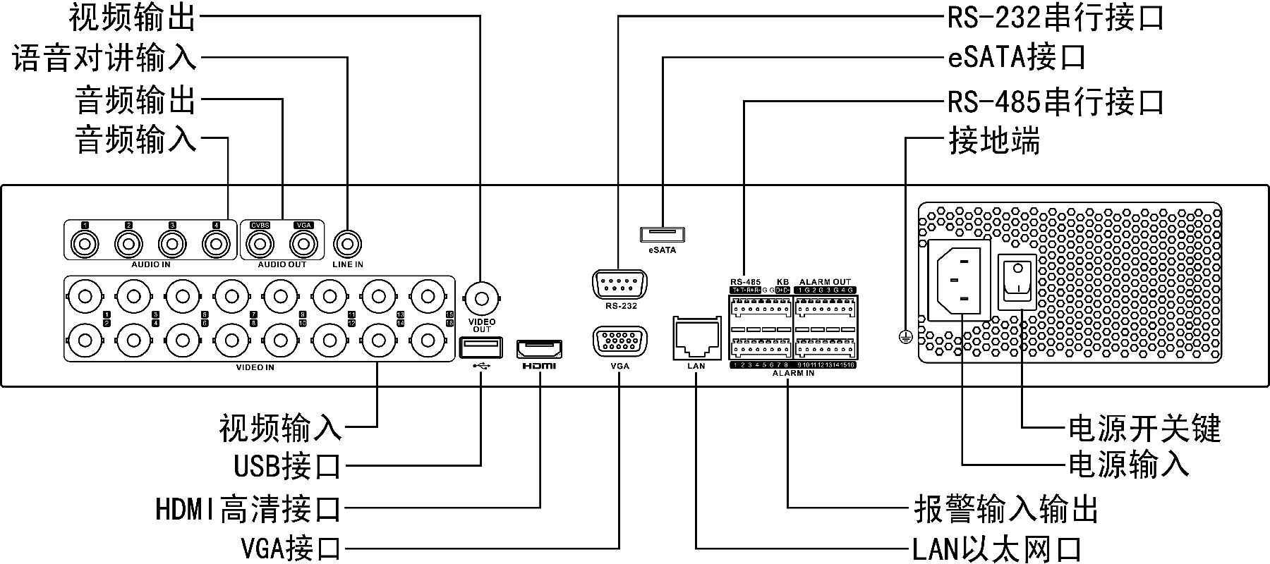 視頻輸入 16路,BNC接口(支持同軸視控)