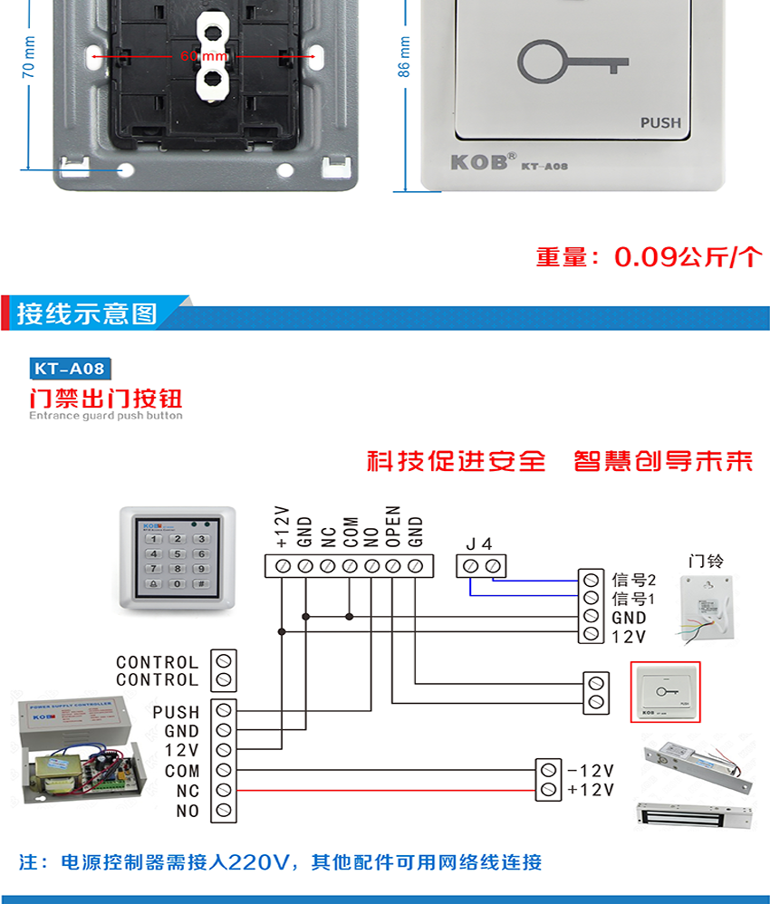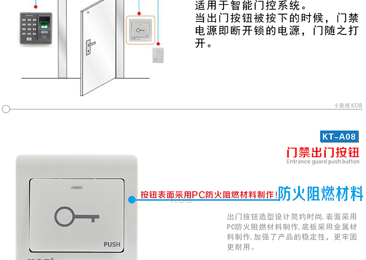 KOB品牌 KT-A08門禁出門按鈕 出門開關
