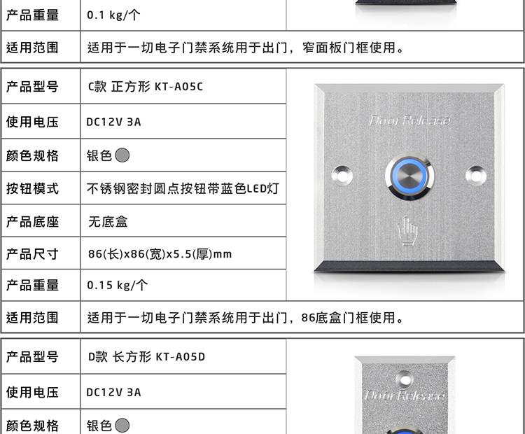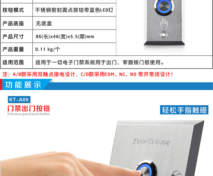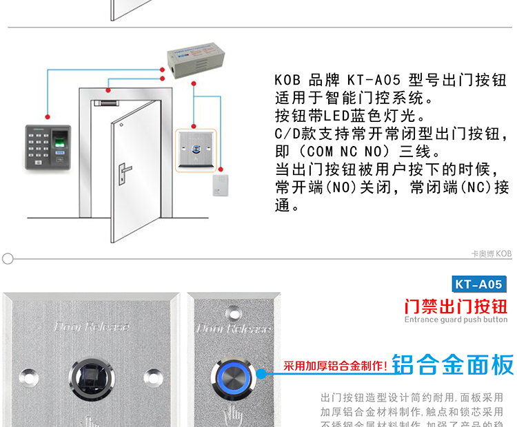 KOB品牌KT-A05門禁鋁合金門禁出門開關