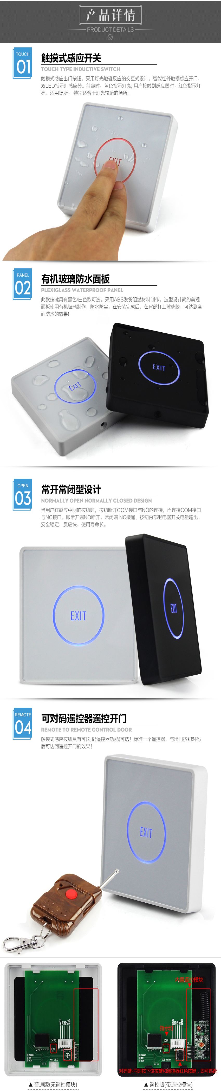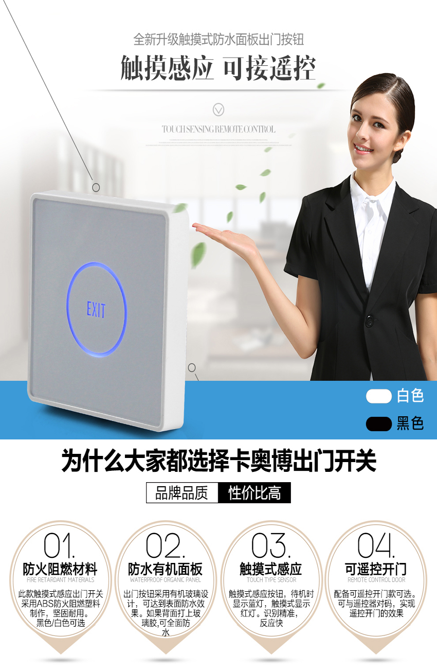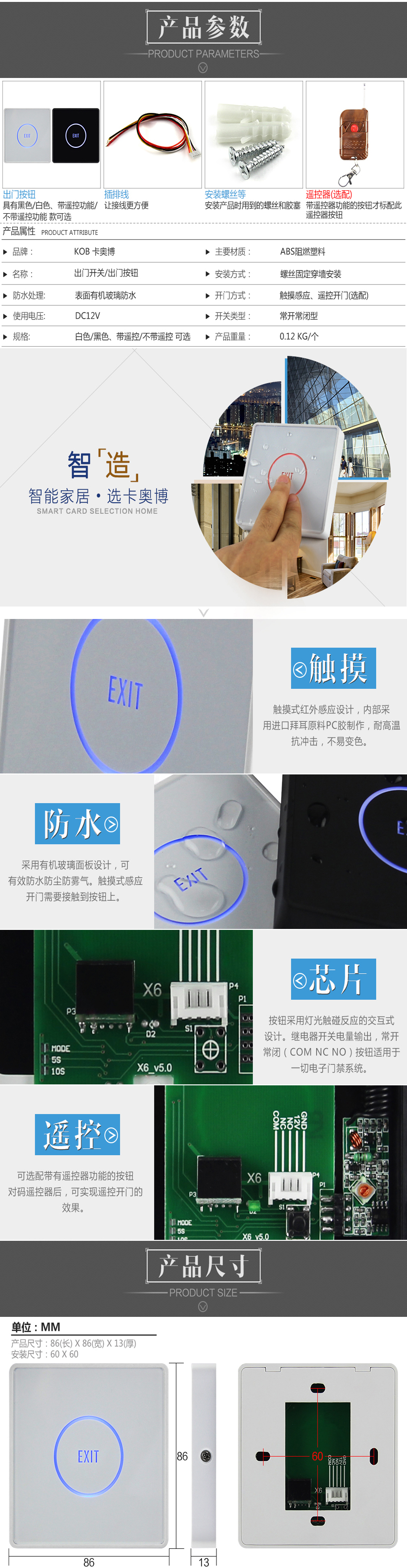 KOB品牌紅外感應出門開關 高端觸摸式門禁按鈕