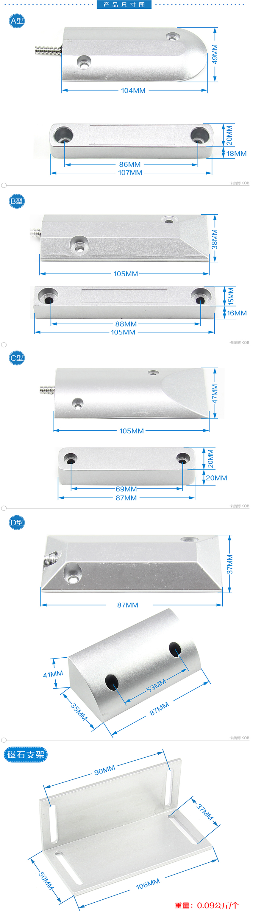 KOB品牌KT-MC01有線門磁開關 鋁合金外殼