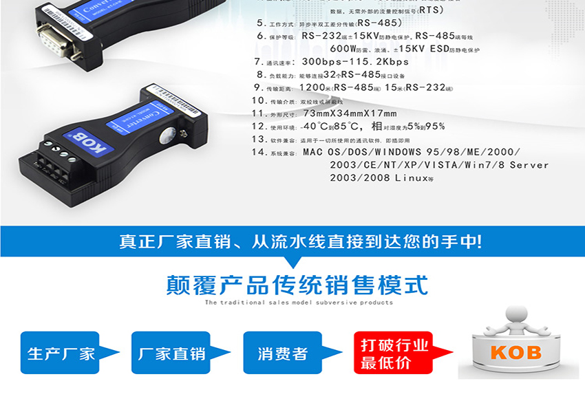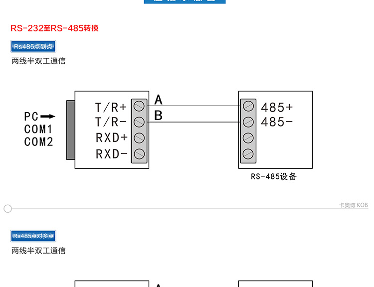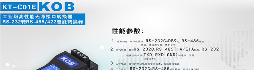 KOB品牌KT-C01E RS232轉485雙向通訊無源轉換器