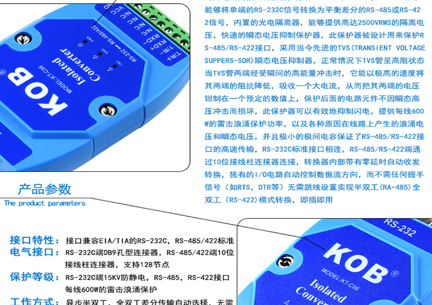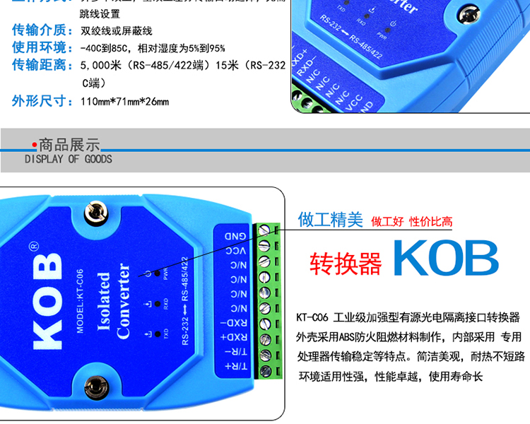 KOB品牌KT-C06工業級加強型有源光電隔離接口轉換器
