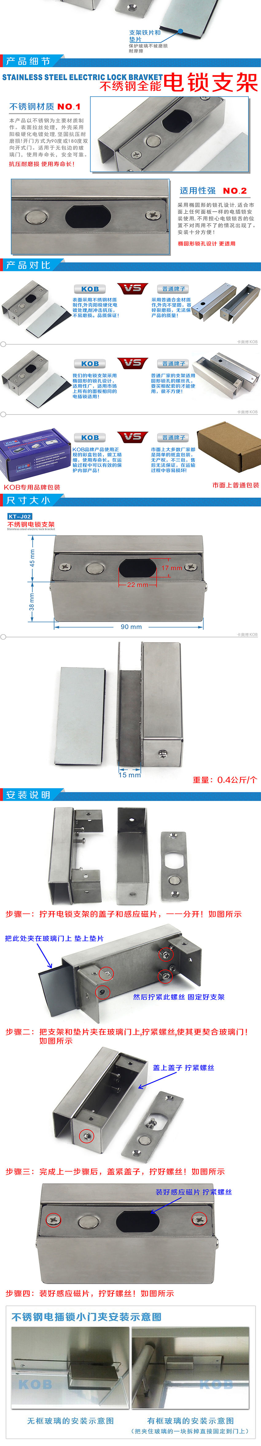 KOB品牌KT-J02電插鎖不銹鋼支架
