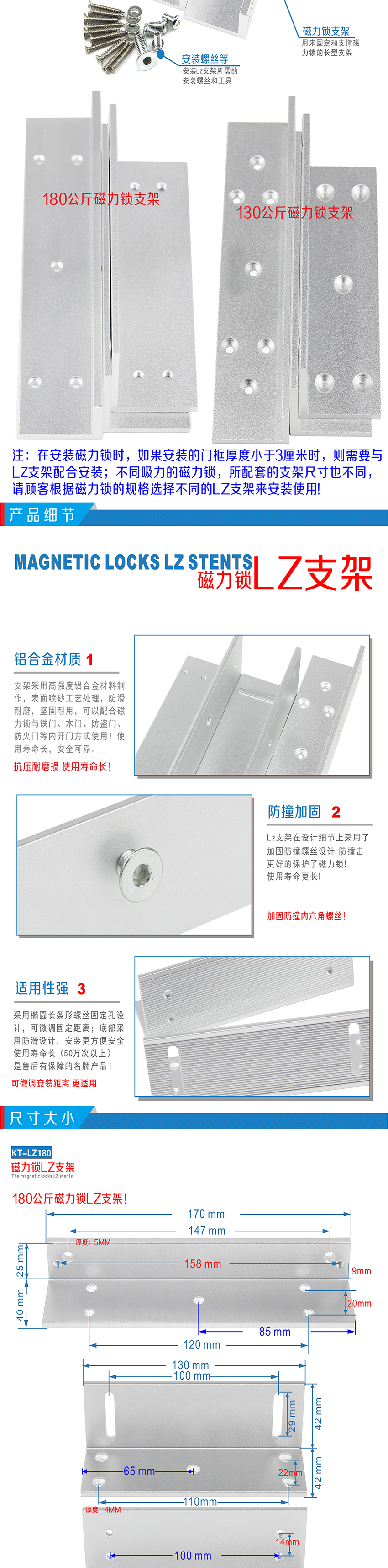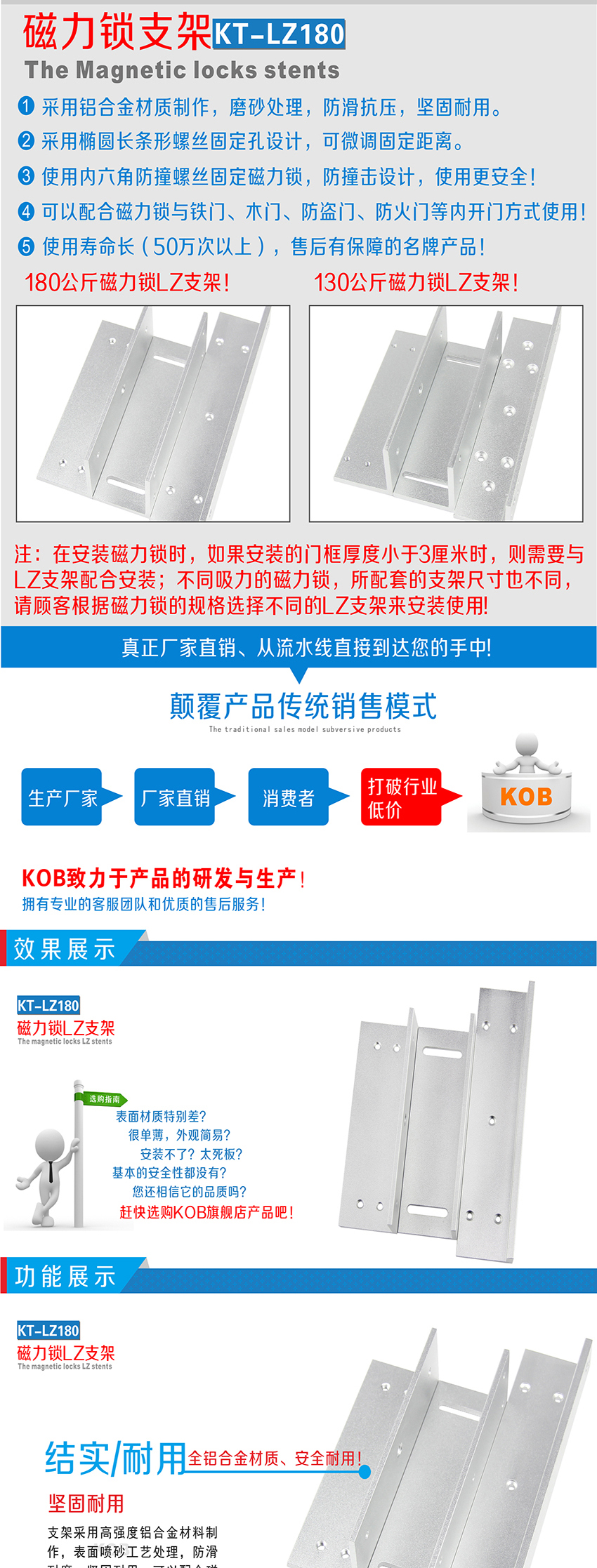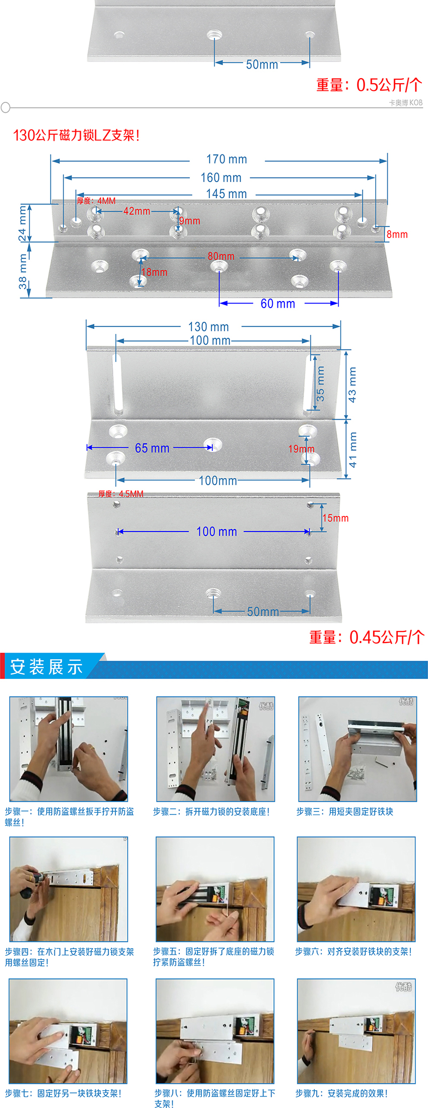 KOB品牌KT-ZL180 180公斤磁力鎖L/Z型支架