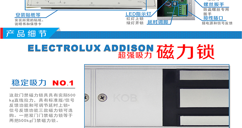 KOB品牌500公斤雙門磁力鎖