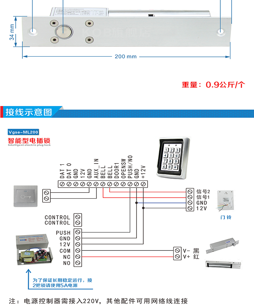 KOB Vseg-ML200門禁八芯專用超低溫電插鎖