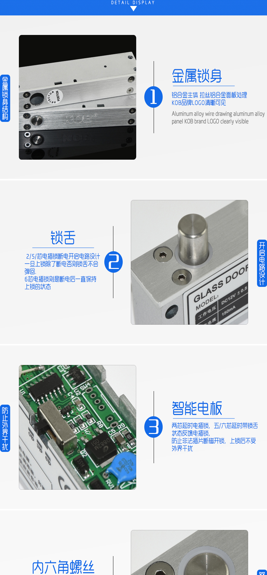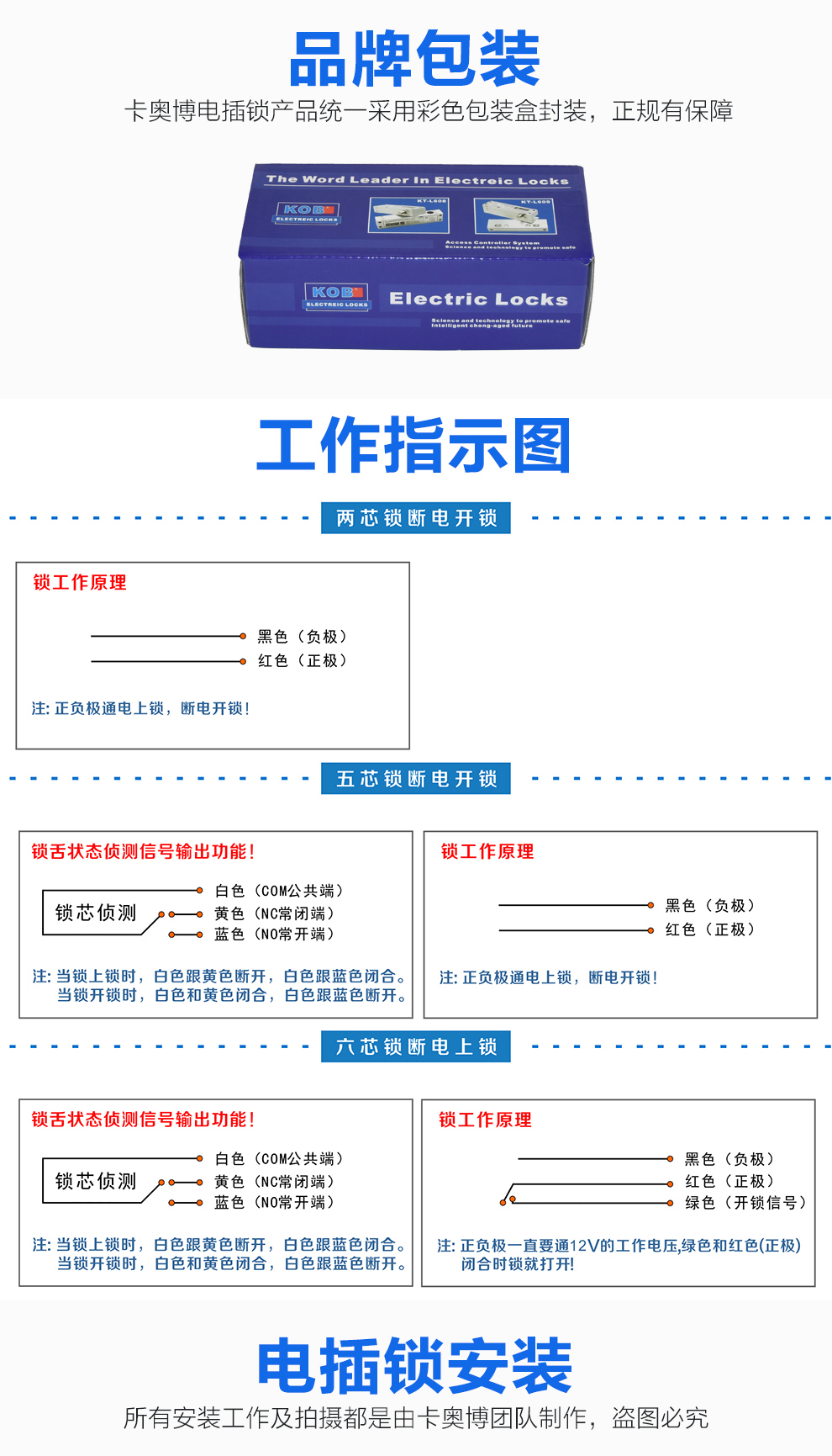 KOB品牌明裝電插鎖 五芯低溫電鎖