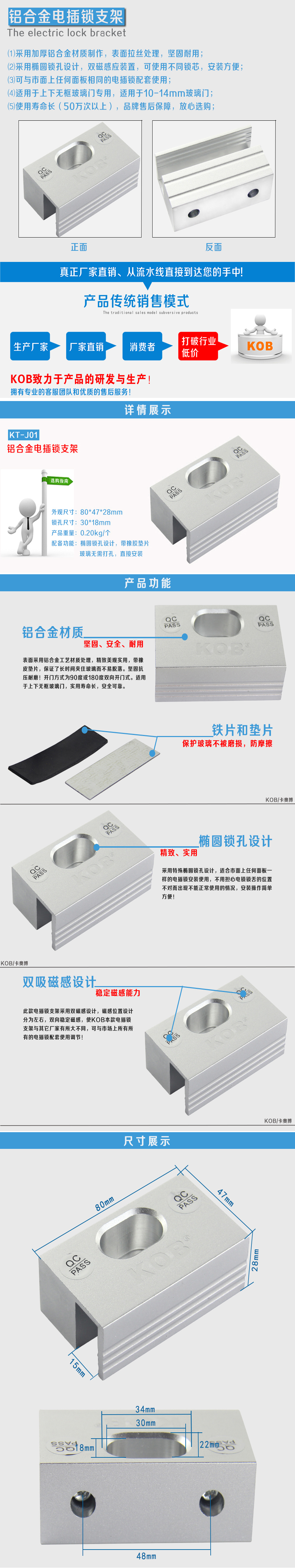 KOB品牌鋁合金電插鎖支架
