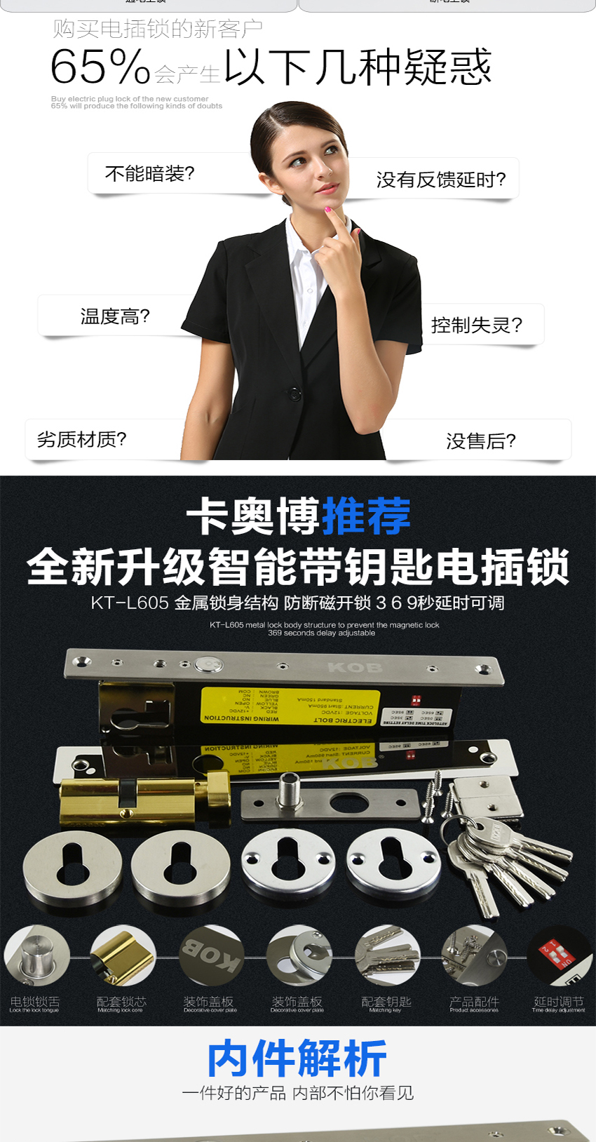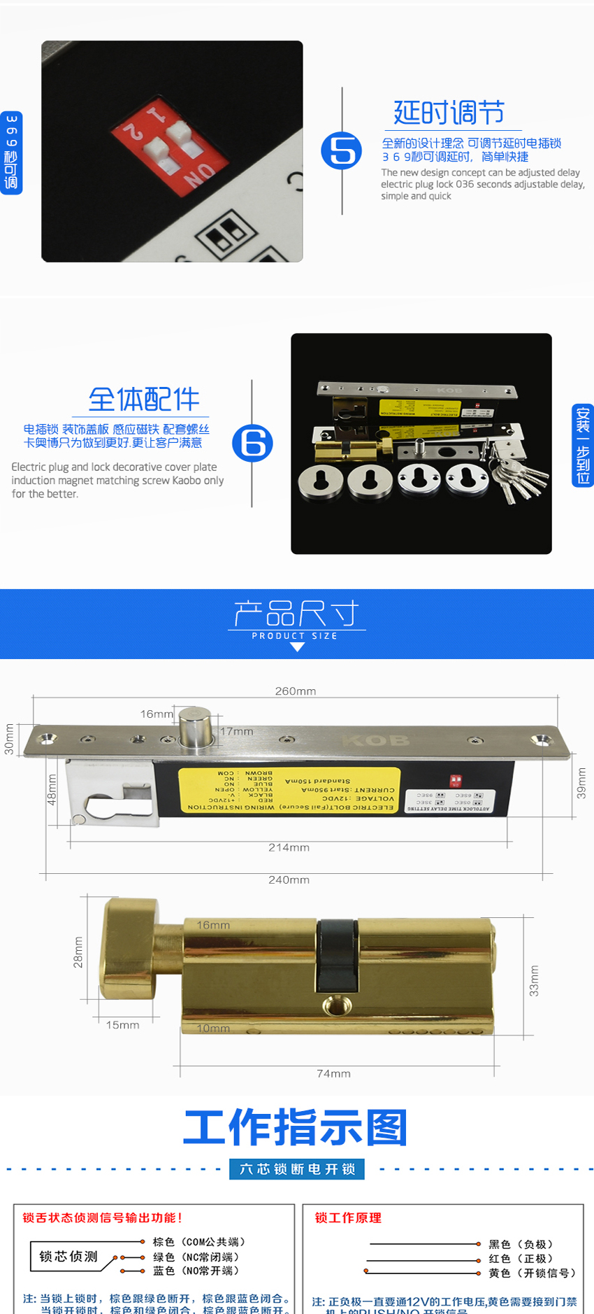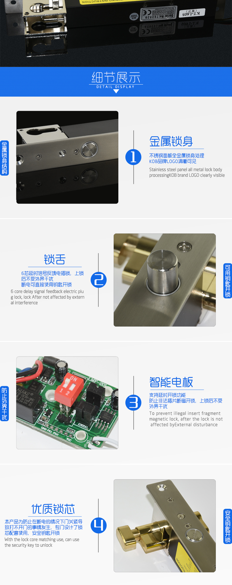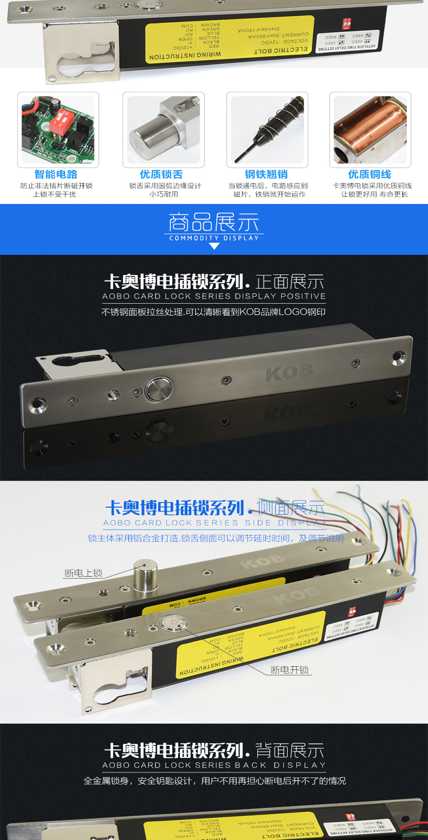 KOB品牌監(jiān)獄六芯電插鎖 斷電上鎖