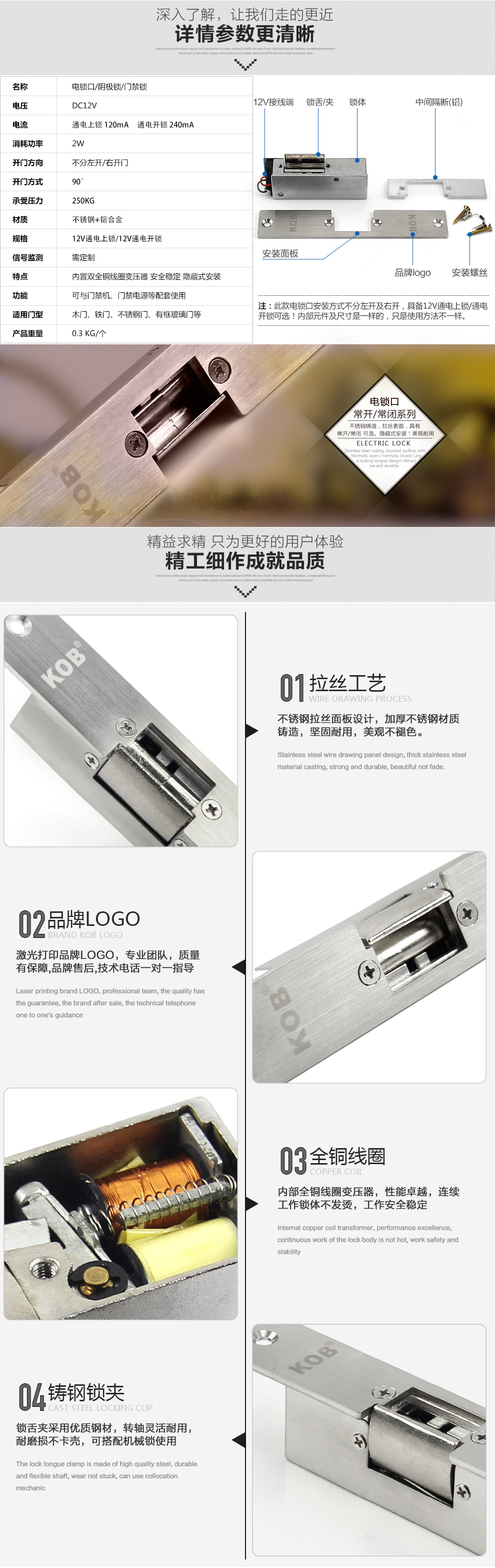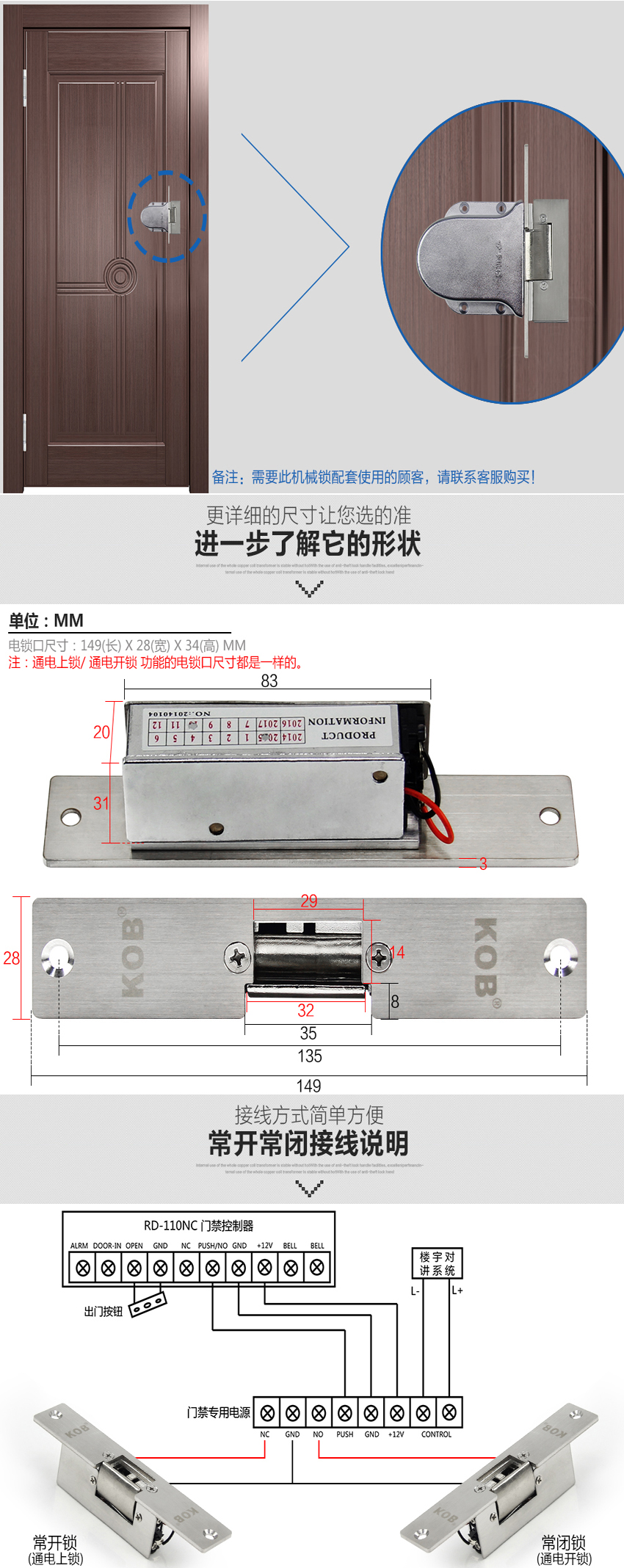 KOB品牌電鎖口 NO NC標準型電子門禁電口鎖