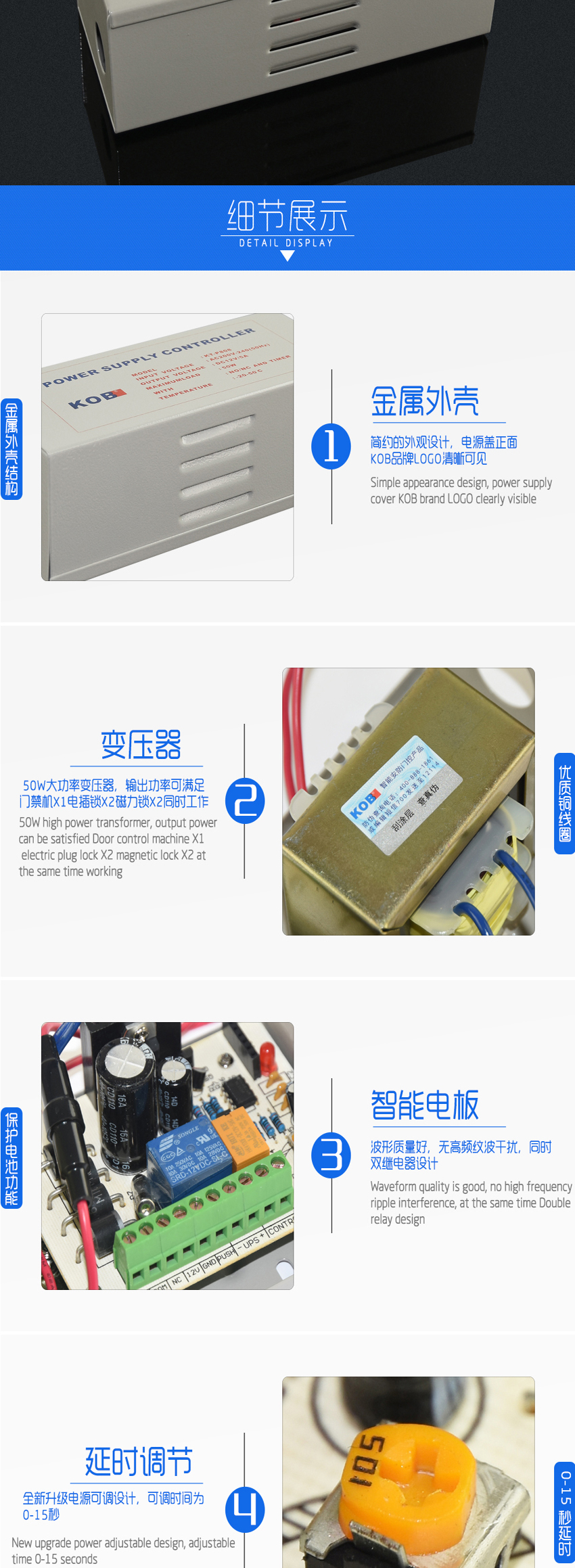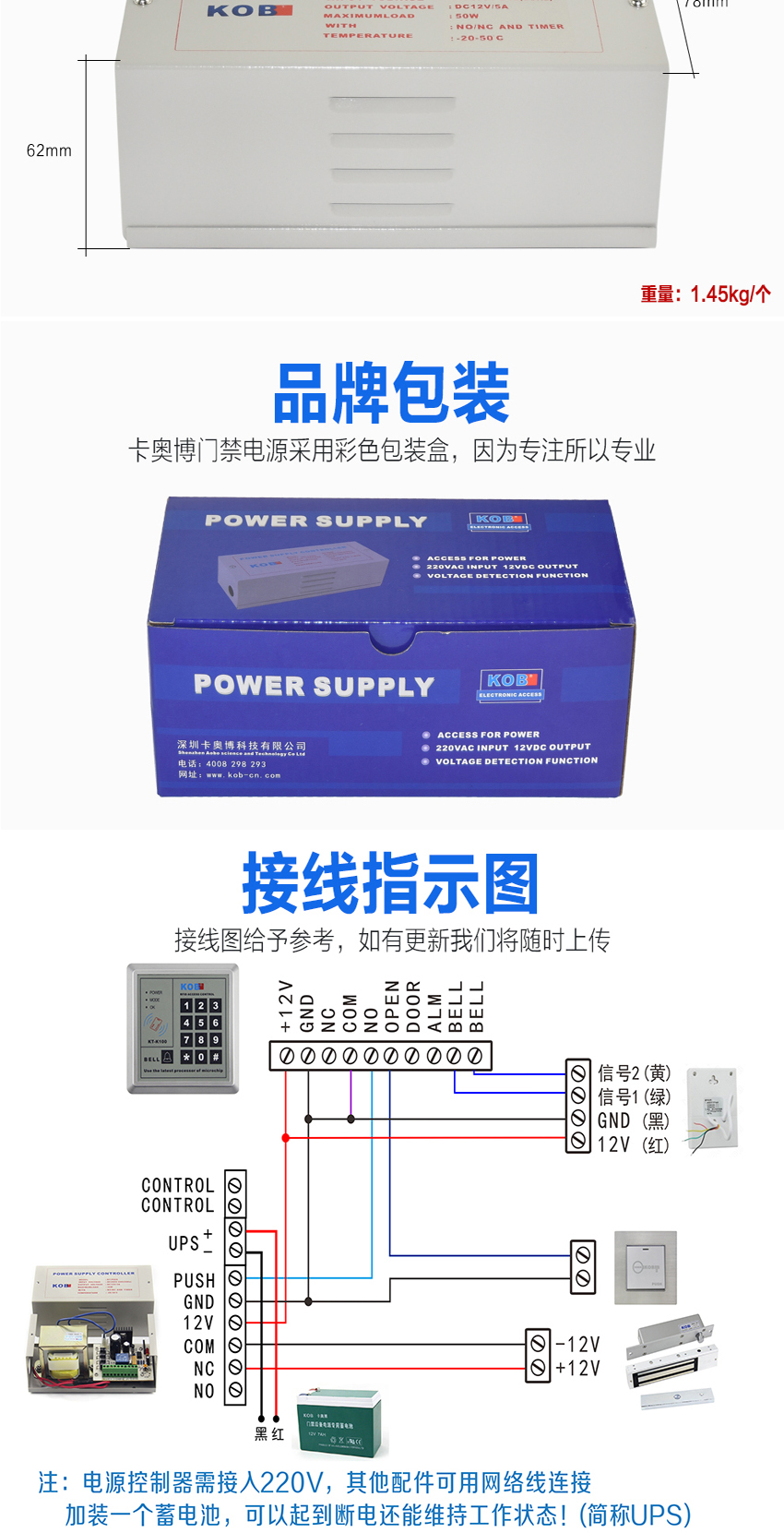 KOB品牌12V5A門禁專用電源 電源控制器