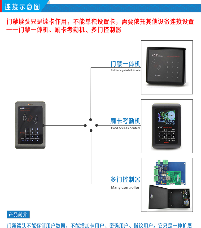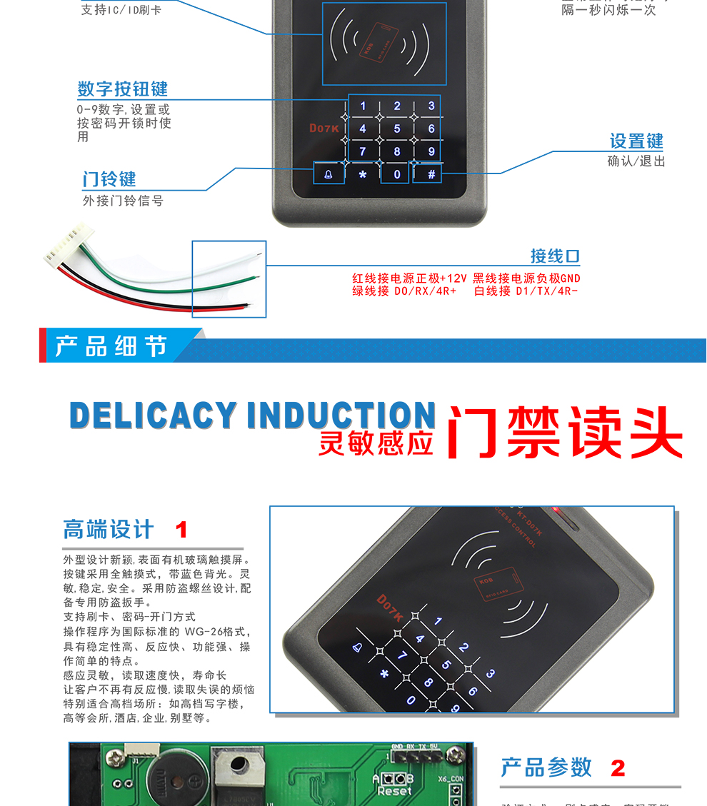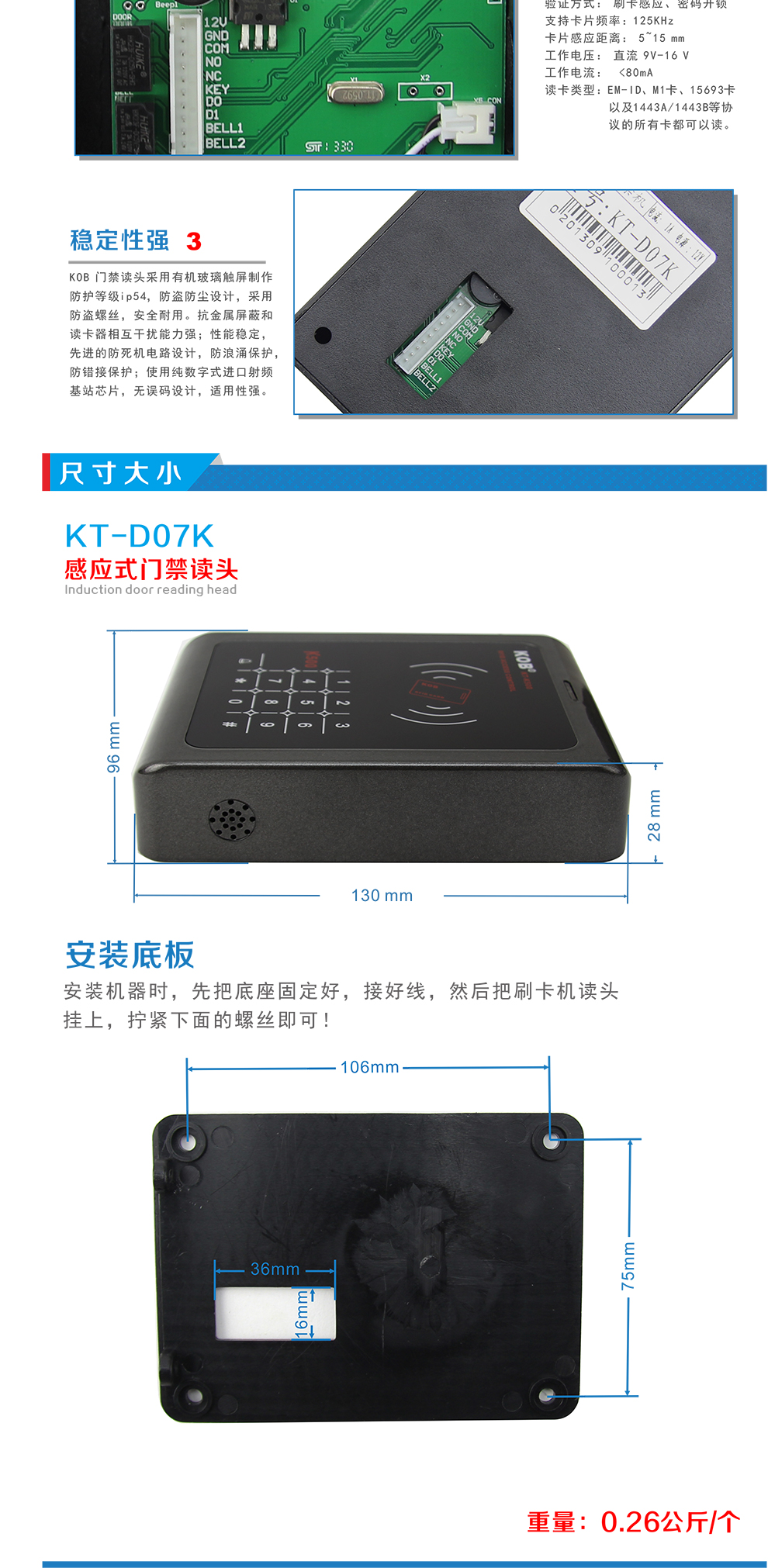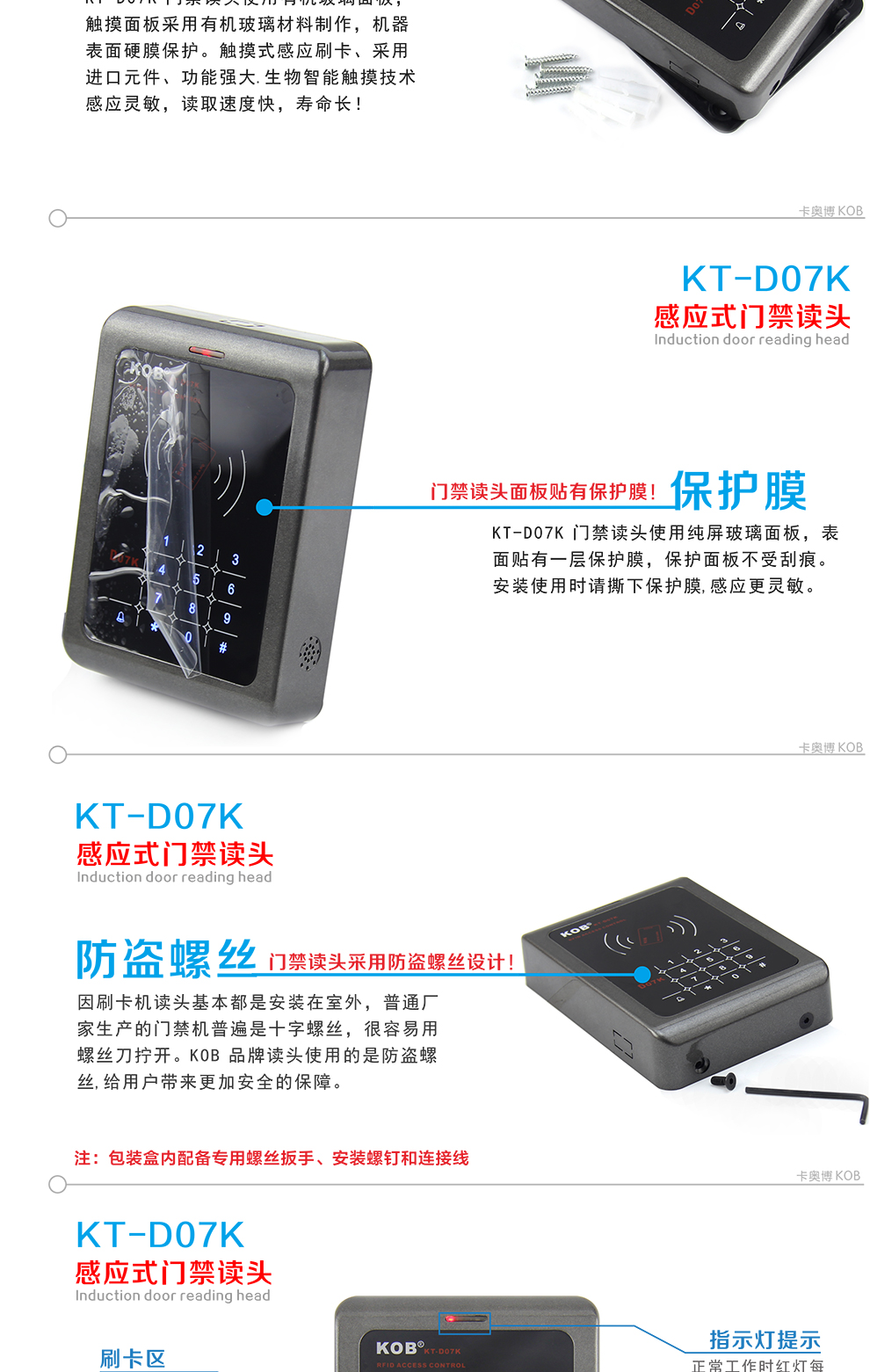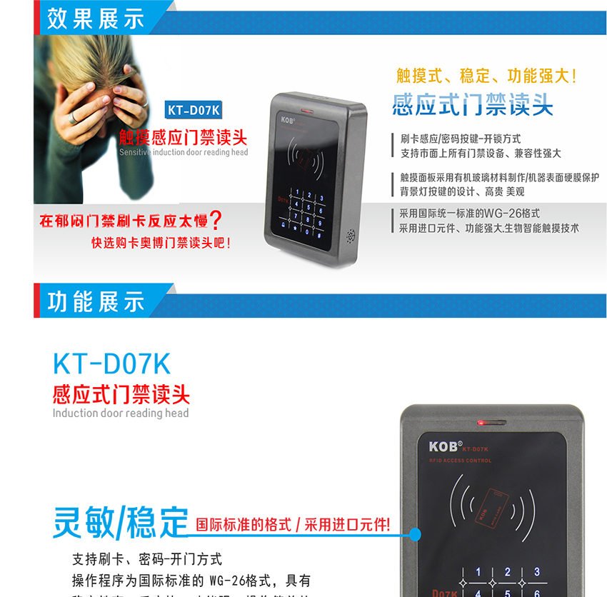 KOB品牌KT-D07K ID IC卡門禁純屏觸摸刷卡讀頭