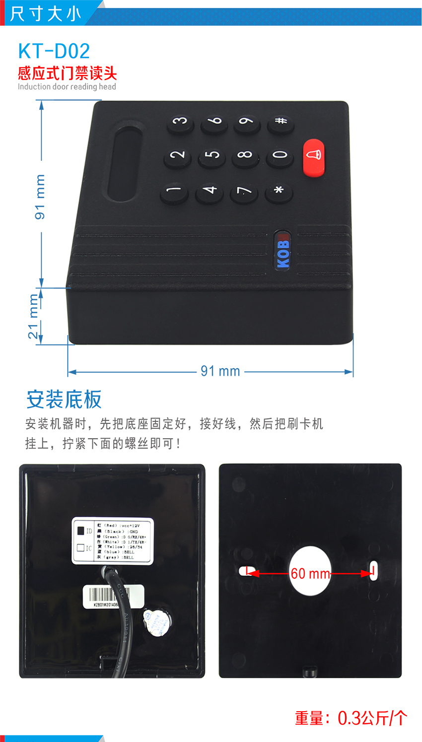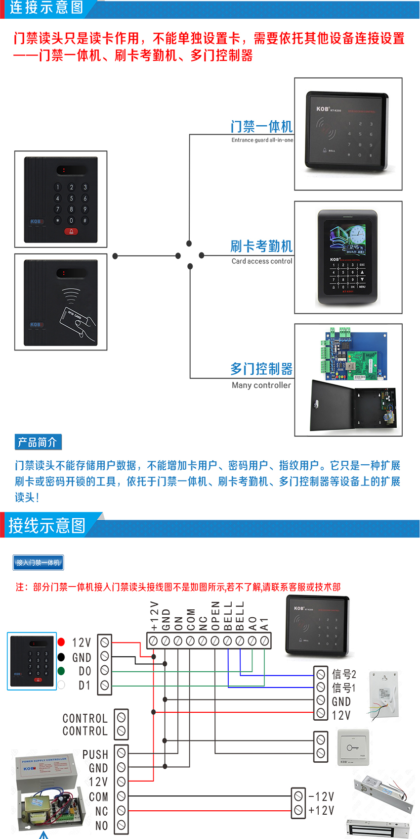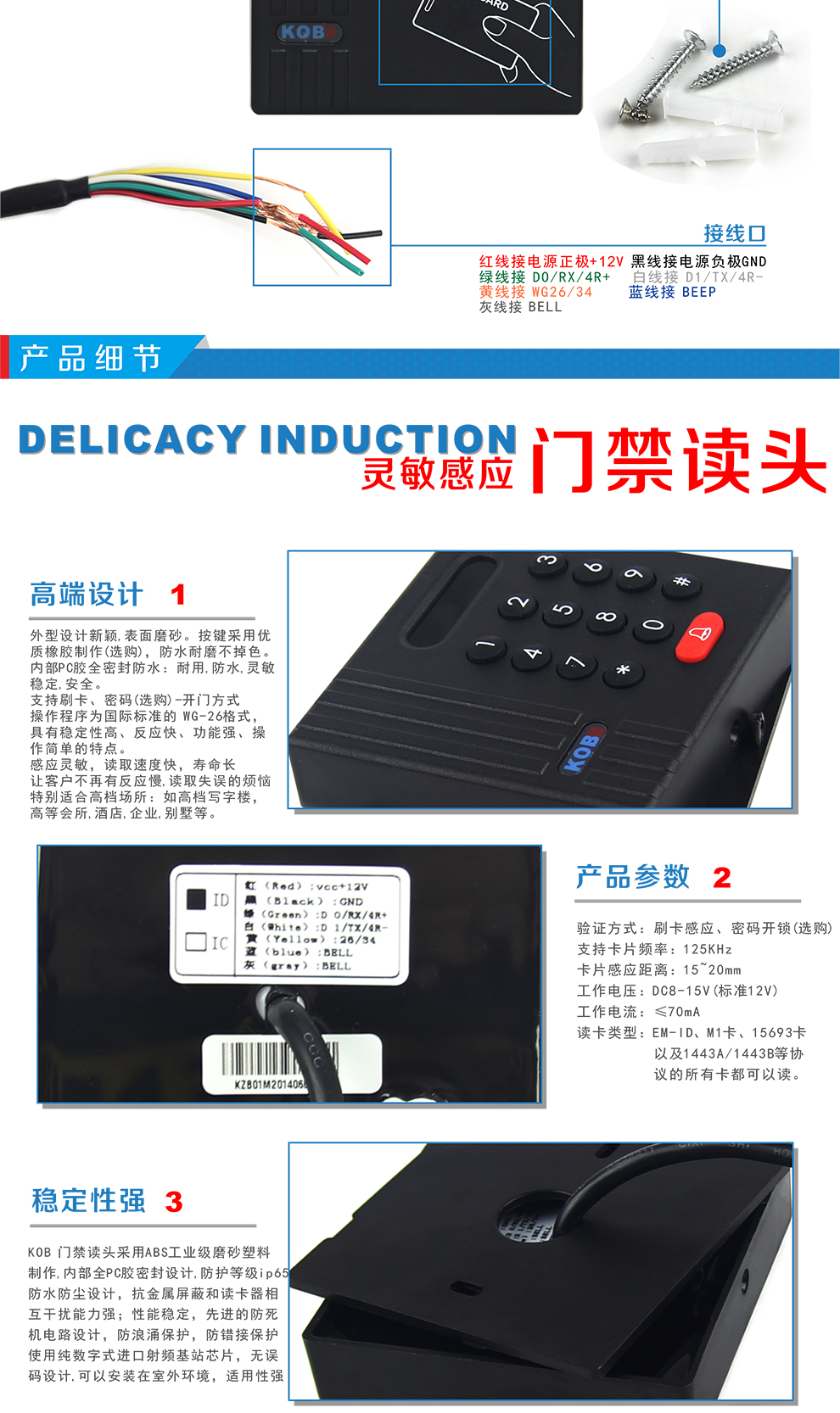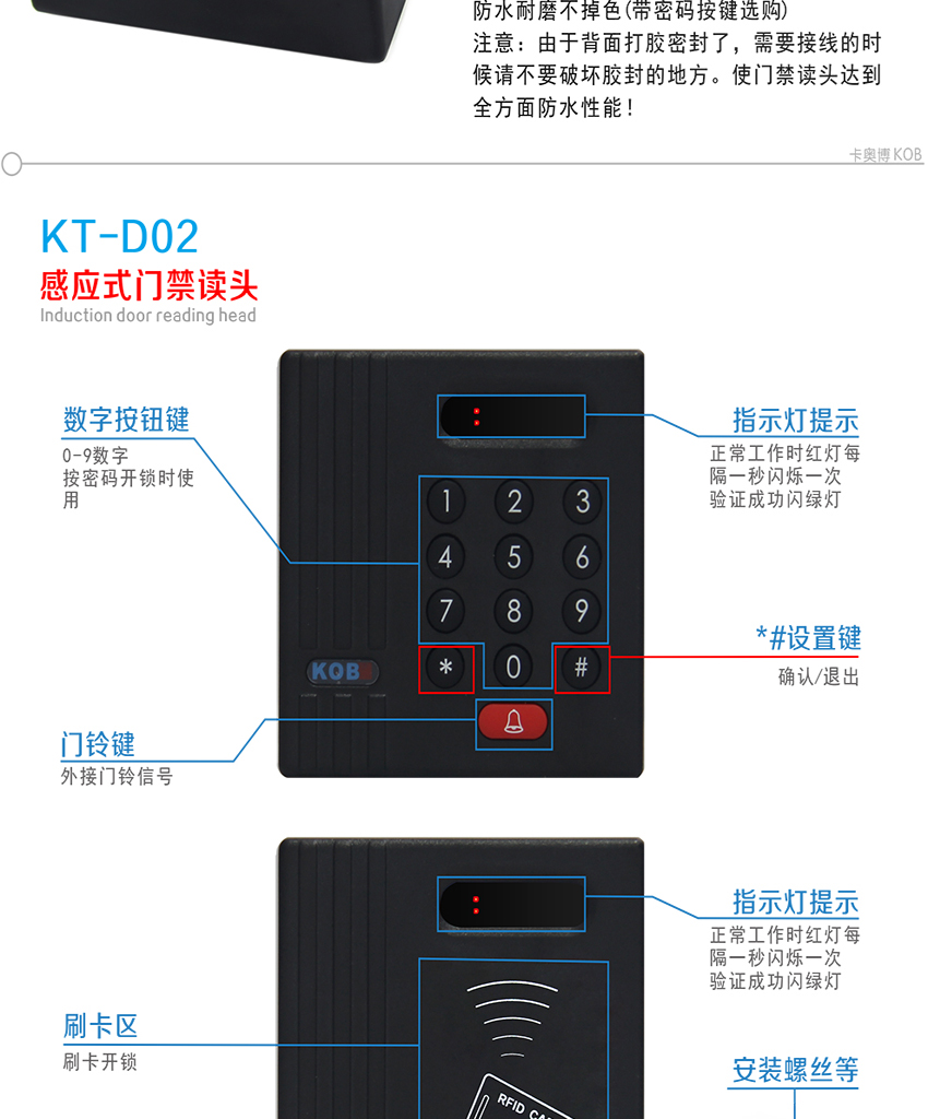 KOB品牌KT-D02微根WG26門禁讀頭