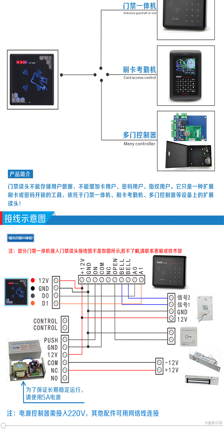 KOB品牌KT-D09m微根WG26門禁讀頭