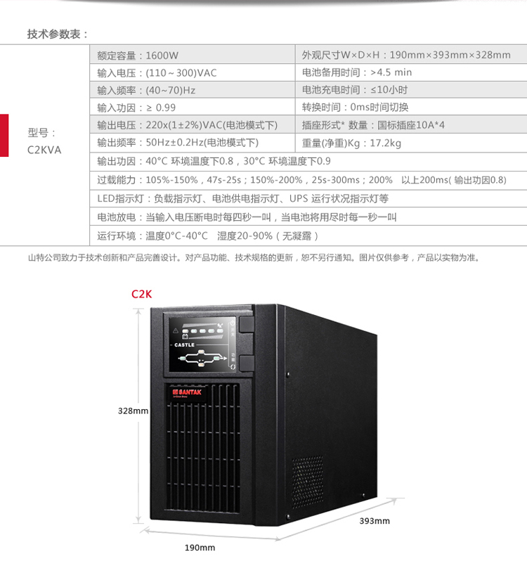 山特 C2KS 2KVA 1600W UPS不間斷電源