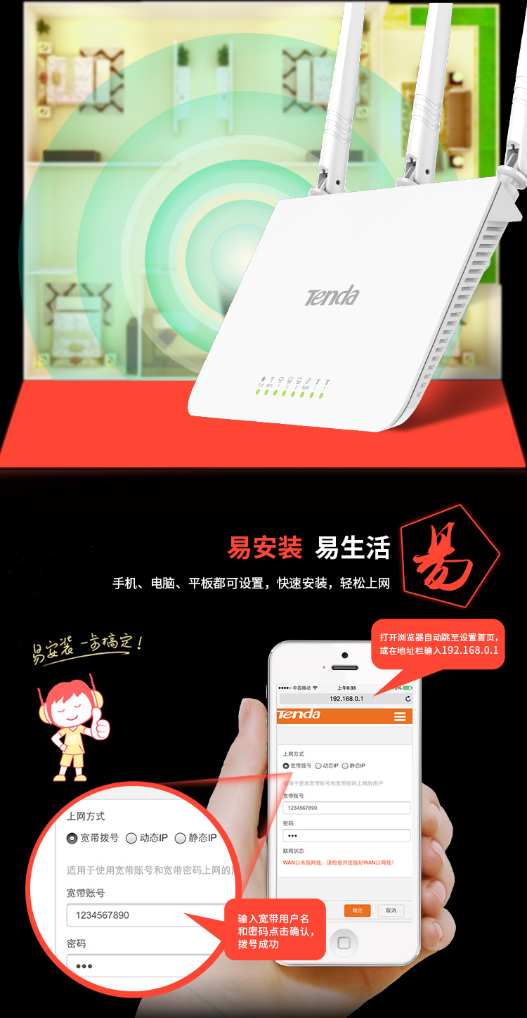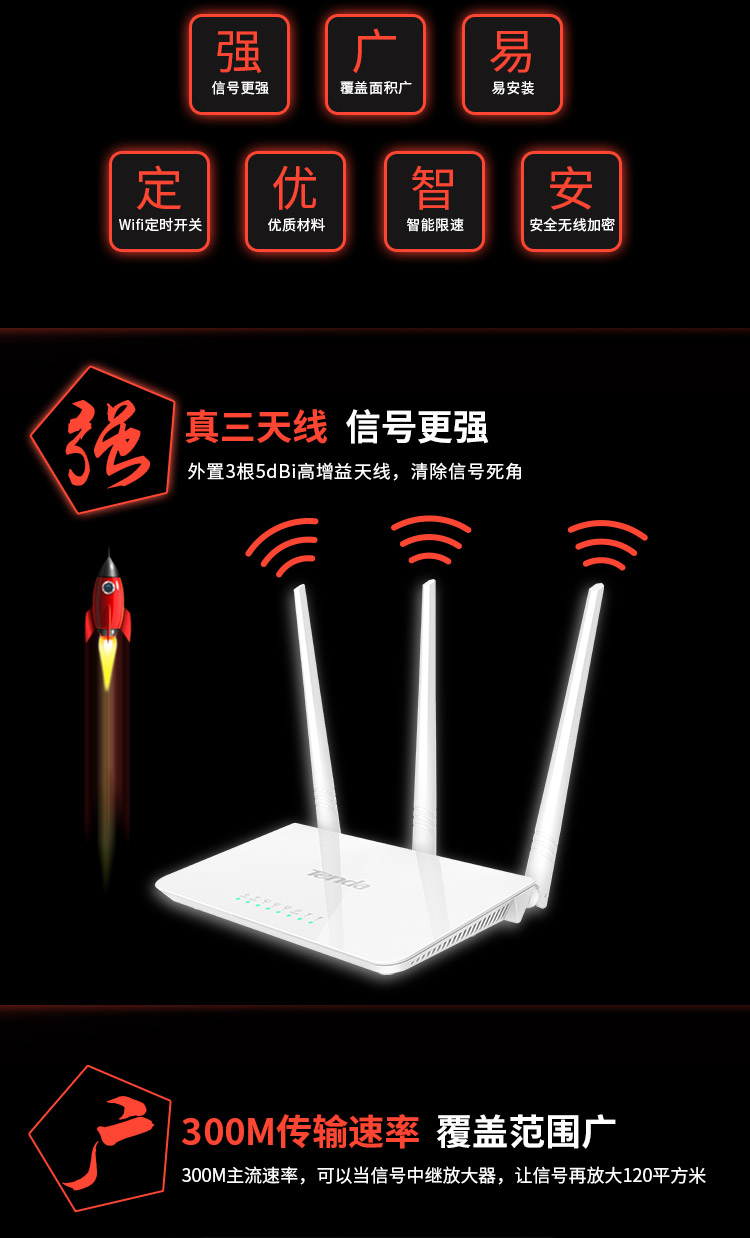 騰達(Tenda)F3 3天線無線路由器