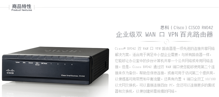 思科(Cisco)RV042 雙WAN口百兆企業VPN路由器