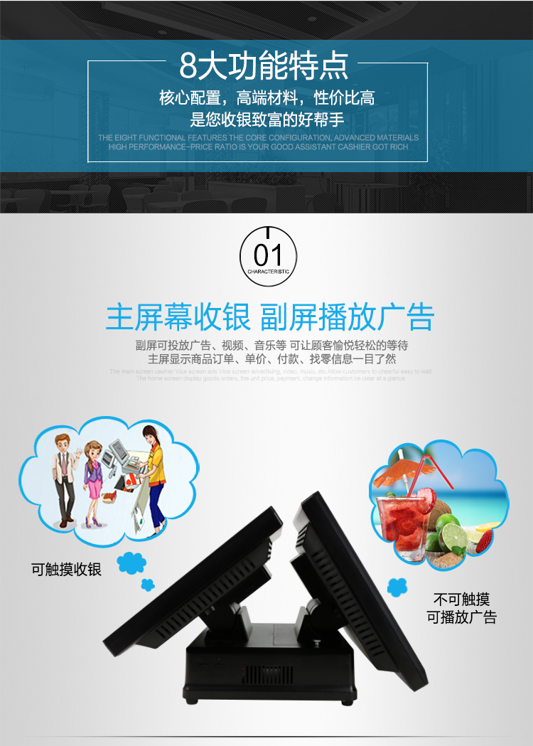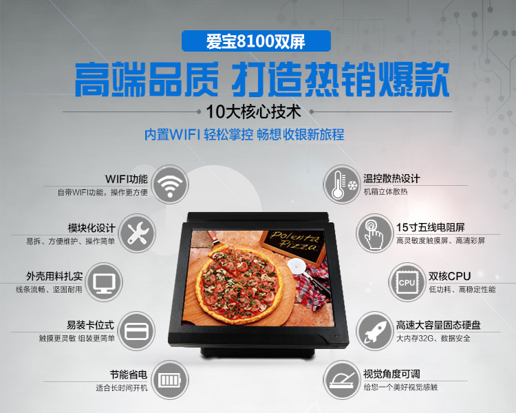 愛寶雙屏觸摸收銀機一體機 內(nèi)置外WIFI