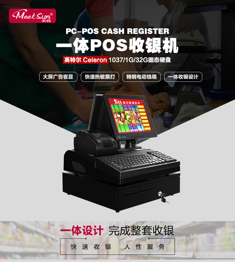 美商MS910D收銀機收款機POS機一體機超市餐飲奶茶店