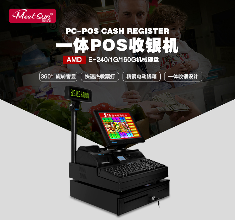 美商MS900收銀機pos收款機 超市餐飲奶茶便利店