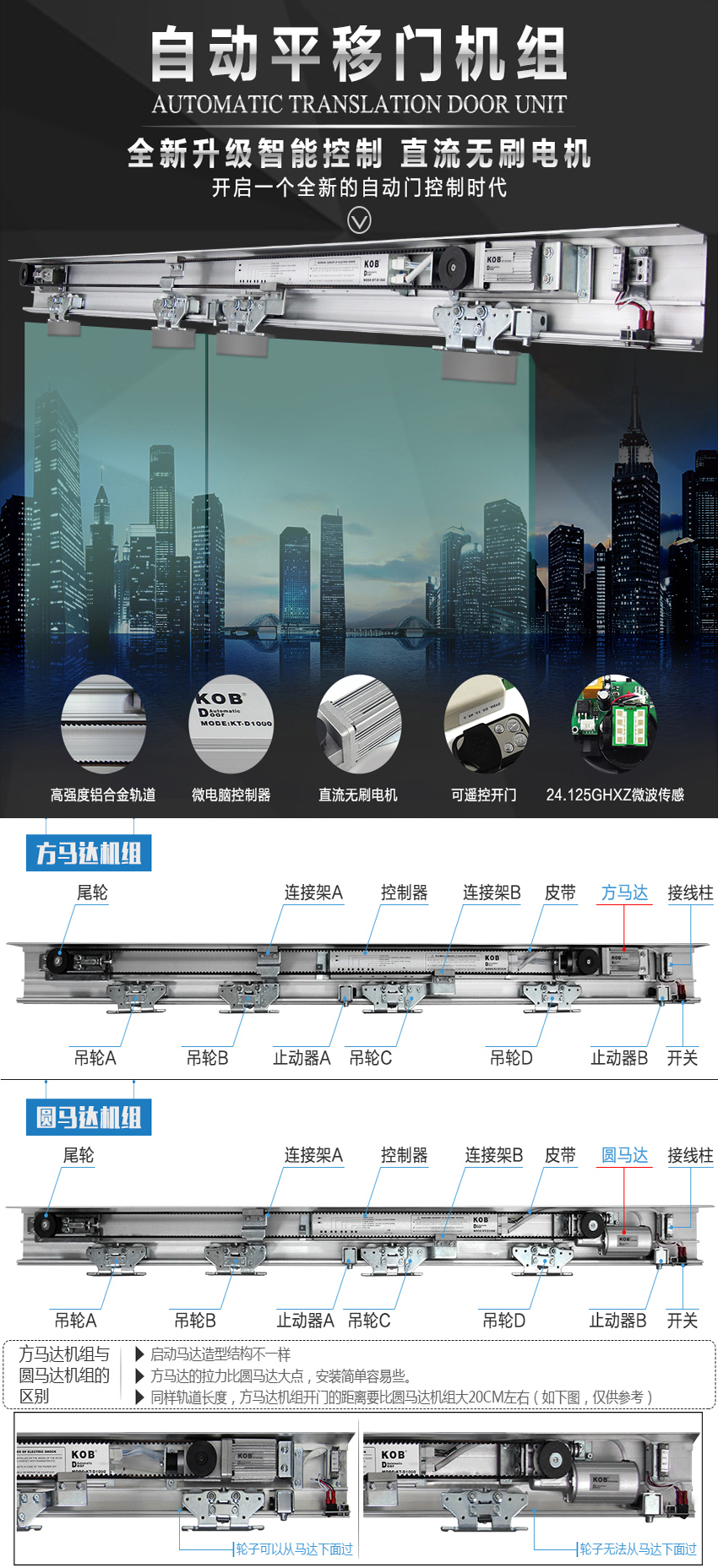 KOB品牌 D1000自動平移感應門整套機組 方馬達+控制器+接線柱